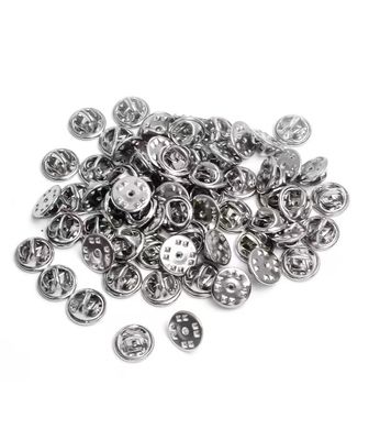 タイタック:クラッチバックのサイズは直径11mm,ピンサイズは直径4.5mm,長さは8mm,銀色で,小さく低プロフィールです.