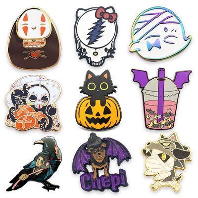 カスタム製造サービスで、あなただけのユニークなラペルピンを作成してください。様々なエナメルタイプ(ソフト、ハード、グリッター)、メッキオプション、形状から選択して、カートゥーンやアニメのデザインを生き生きとさせましょう。