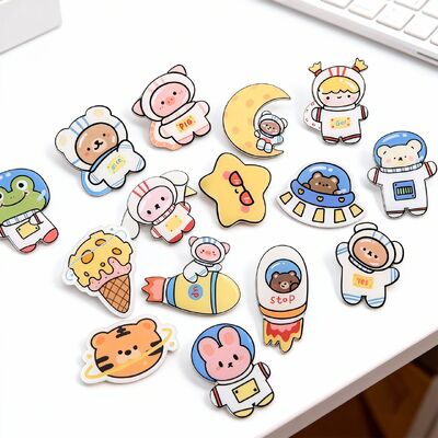 カスタム印刷されたロゴ、漫画のデザイン、アニメ キャラクター、または名前をフィーチャーした、パーソナライズされたアクリル ヘアピン、ボタン バッジ、アクセサリーを作成します。これらの多用途ピンは、しっかりと取り付けられるように裏面に磁石が付いています。