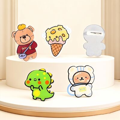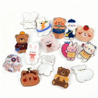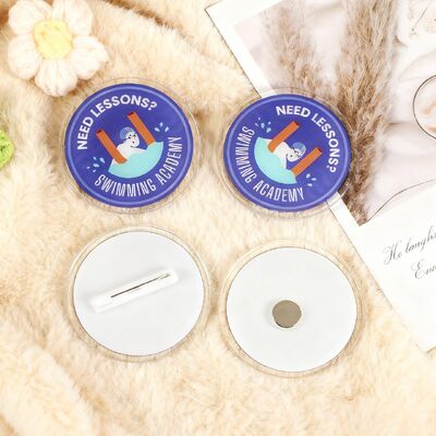 カスタム印刷されたロゴ、カートゥーンデザイン、アニメキャラクター、または名前を特徴とするパーソナライズされたアクリルヘアピン、ボタンバッジ、アクセサリーを作成します。これらの汎用性の高いピンは、さまざまな表面にしっかりと取り付けるための磁気バックを備えています。
